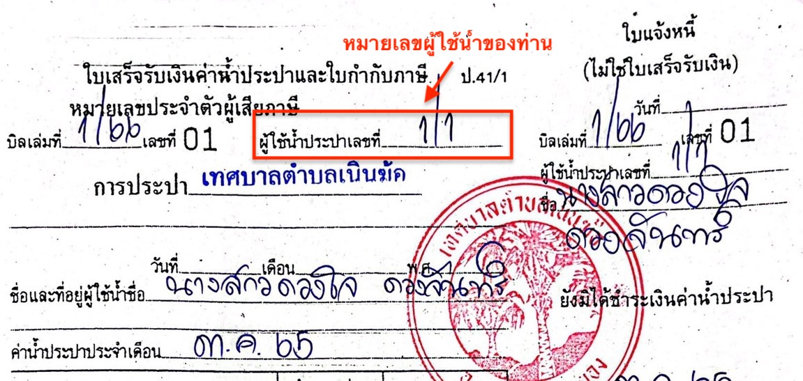 หมายเลขผู้ใช้น้ำของท่าน คลิ๊ก.